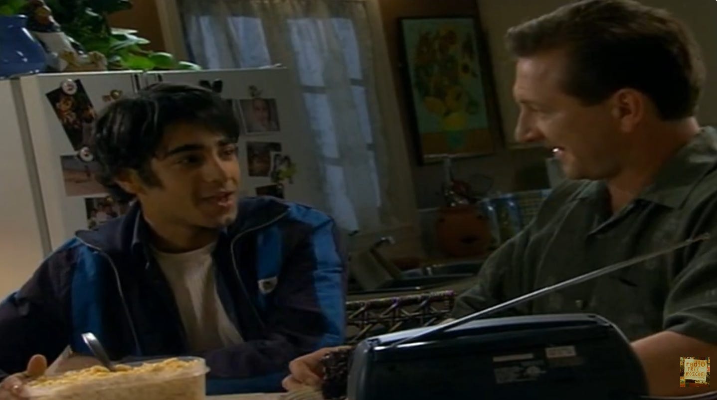 The full first two minutes of the episode are about updating the greeting on an answering machine and how one answers a phone line shared by the entire household - oh, those were the days. This segues into another conversation about how strict Ray’s dad is, and that determines today’s RFR topic: When is it okay to say no to a parent? Time for storytime with Ray: with Robbie as his witness, at dinner last night he got an ultimatum to either shave his sideburns or not be in this year’s family photo at all (which does seem harsh). What’ll happen tonight when he’s by himself? All will be revealed in tomorrow’s My Pal Pronto segment.