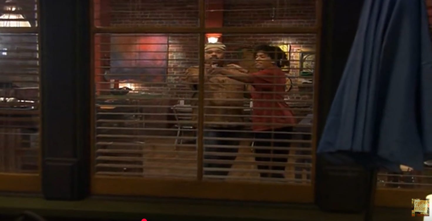 Starry Eyes calls in again, and Robbie starts to say he thinks it might be time for them to meet in person, but Lily cuts him off quickly by yet again playing a song, then asking if he really wants to ruin everything they’ve worked for. Travis agrees, saying if he reveals himself as Question Mark, the others will quickly be found out, and it might be the end of Radio Free Roscoe. Robbie argues that he started the show so people would hear them, and someone has now heard him so he wants to show her the man behind the message. Ray is on his side, saying, “If it seems like he might have a chance with Judy, he has to take it, no matter what the cost might be.” Robbie picks the call back up and offers to meet at Mickey’s. Here we go…
