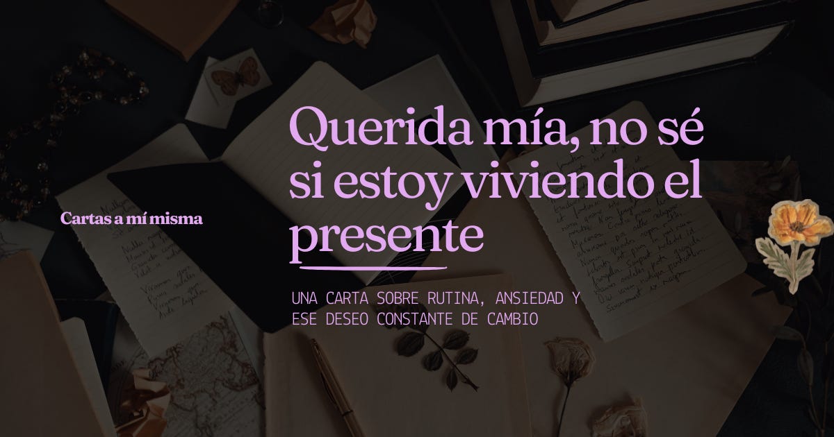 Querida mía,estas cartas que te envío desde este presente muchas veces se sienten como desahogos desesperados —jajaja—, pero ¿sabes algo? Creo que son mi forma de decirme a mí misma: todo está bien.