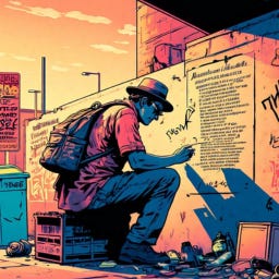 Tommy, a street vagrant, experiences a call to create on an abandoned gang-tagged wall. His words lead to a movement for others to see and read the story he has to share.