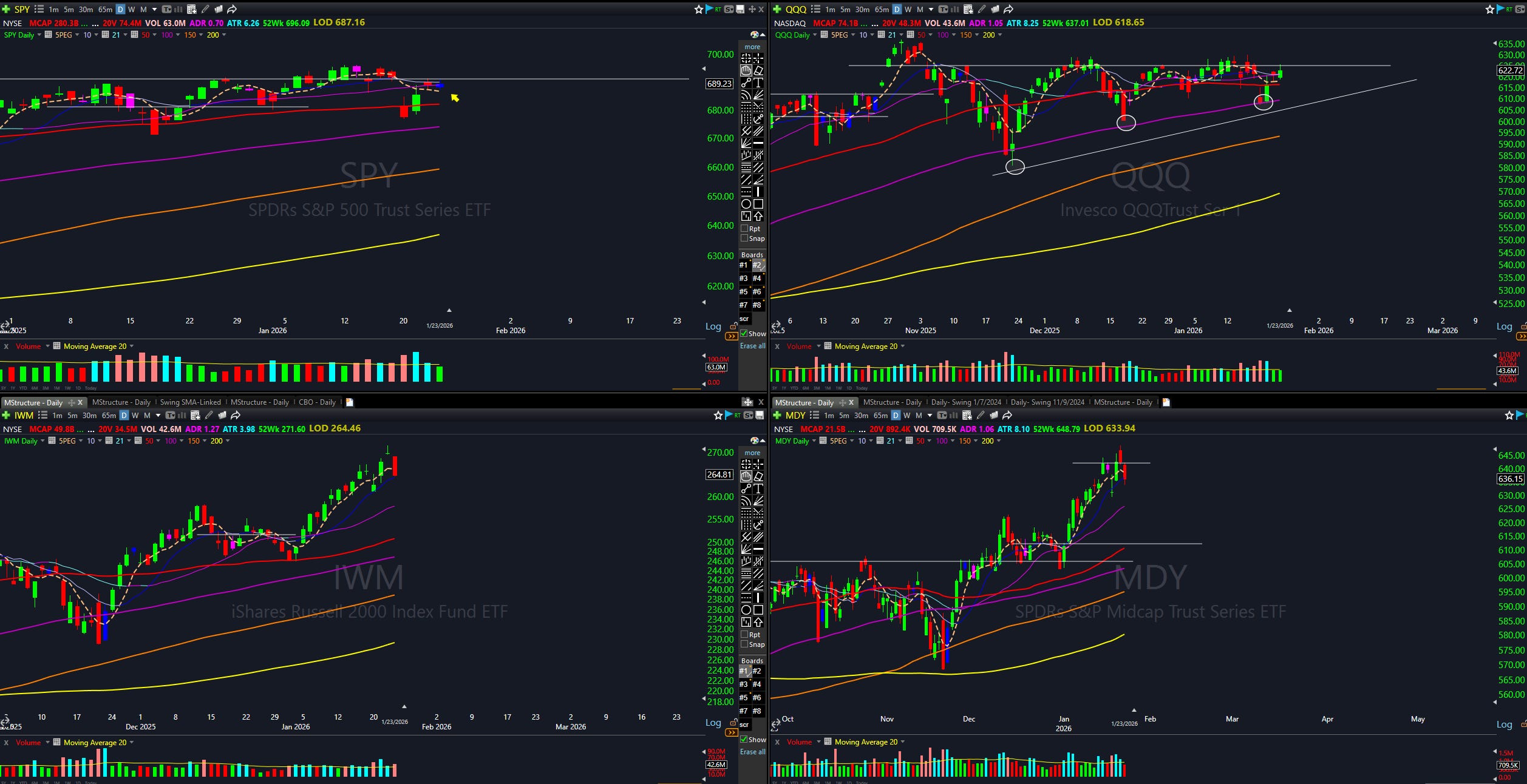 Consolidation. We’ve had a run for about 1.5 Months. Things can still consolidate here and be constructive. I think a rest period for the IWM and MDY to go sideways, pull in, and then launch out another leg would be the best case scenario.