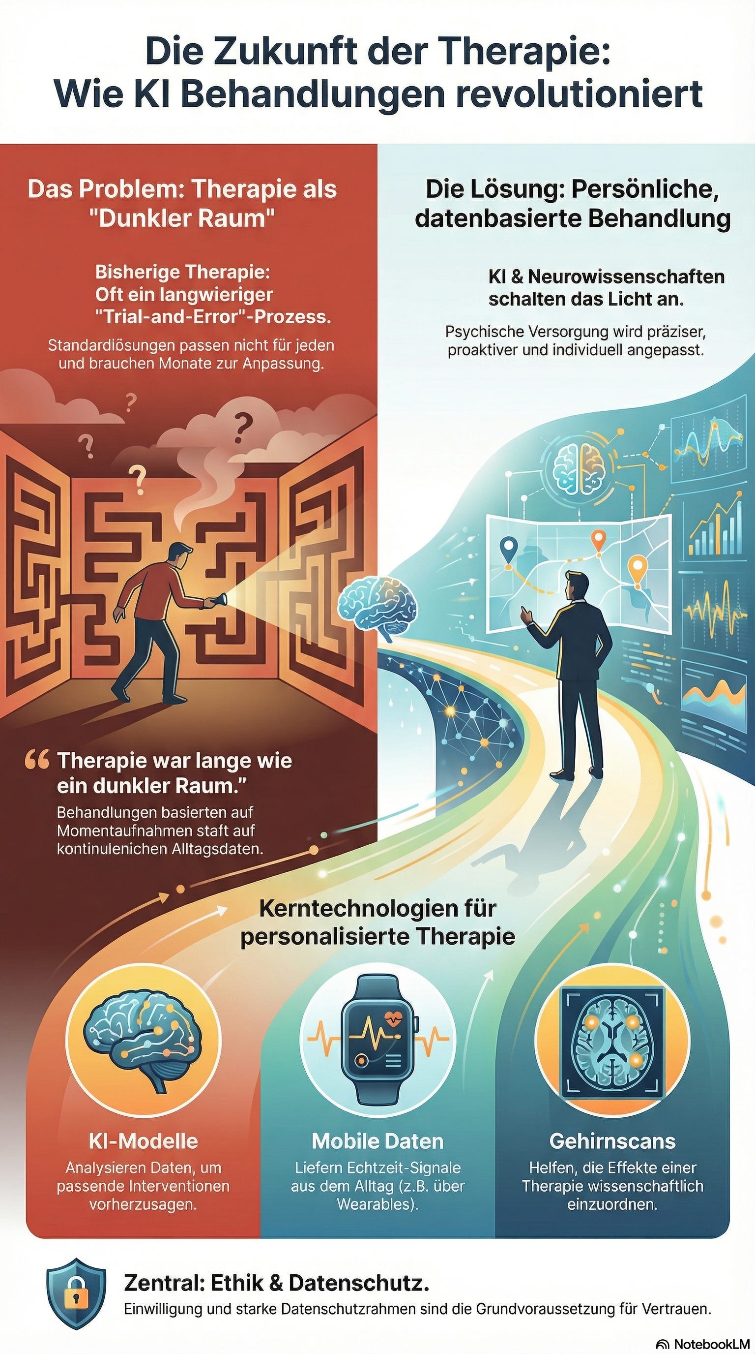 Psychische Versorgung wird präziser und proaktiv. Statt Standardlösungen entstehen maßgeschneiderte Pläne, die sich mit dem Leben der Menschen mitbewegen. Das erhöht Wirksamkeit – und Vertrauen.