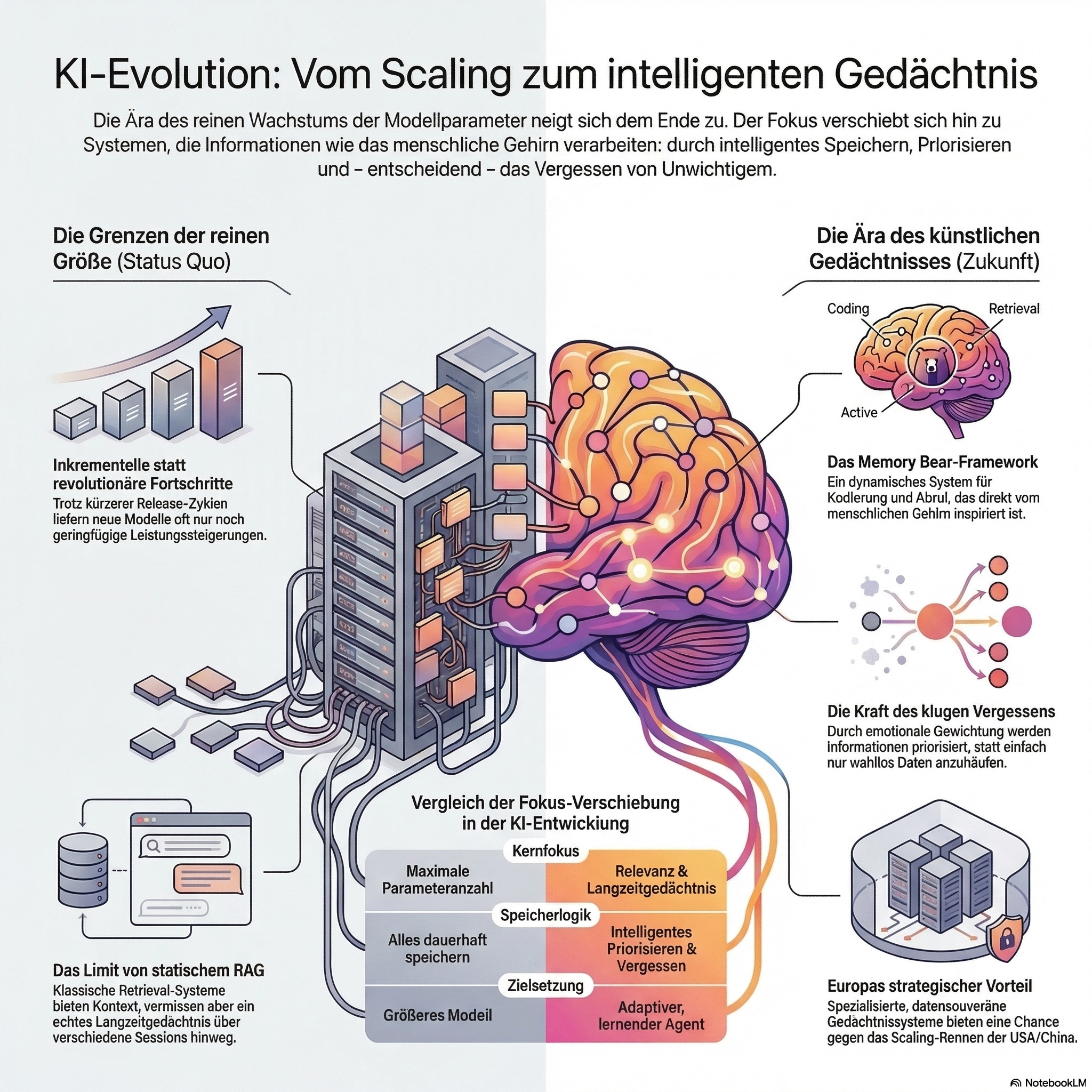 Der Wettbewerb verschiebt sich von Modellgröße zu Gedächtnisarchitektur. Wer Kontext intelligent speichert, priorisiert und vergisst, baut die besseren Agenten. Nicht das größte Modell gewinnt – sondern das mit dem relevantesten Gedächtnis.