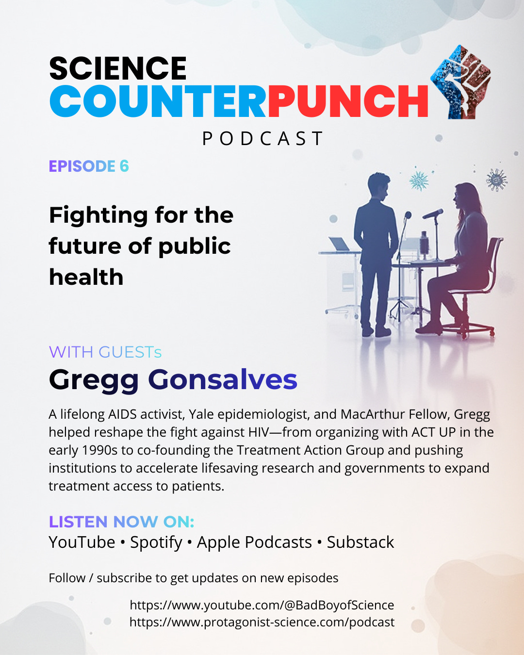 In this episode of Science Counterpunch, we welcome epidemiologist, MacArthur Fellow, and lifelong AIDS activist Gregg Gonsalves to talk about what happens when politics is at odds with public health.