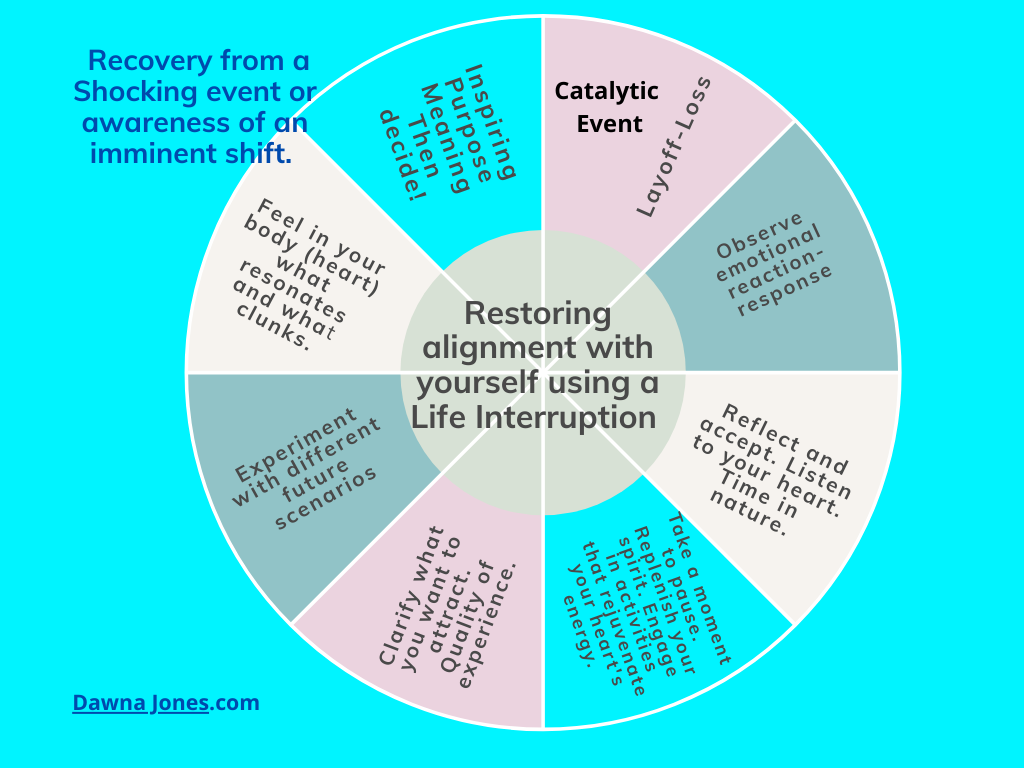 Full disclosure, I have never been laid off, but I have fired clients who were using my work to ‘control’ employees and “bring them into alignment”. After personal losses and life’s interruptions, I began to notice a pattern in my experience. It is not necessarily linear but can be.