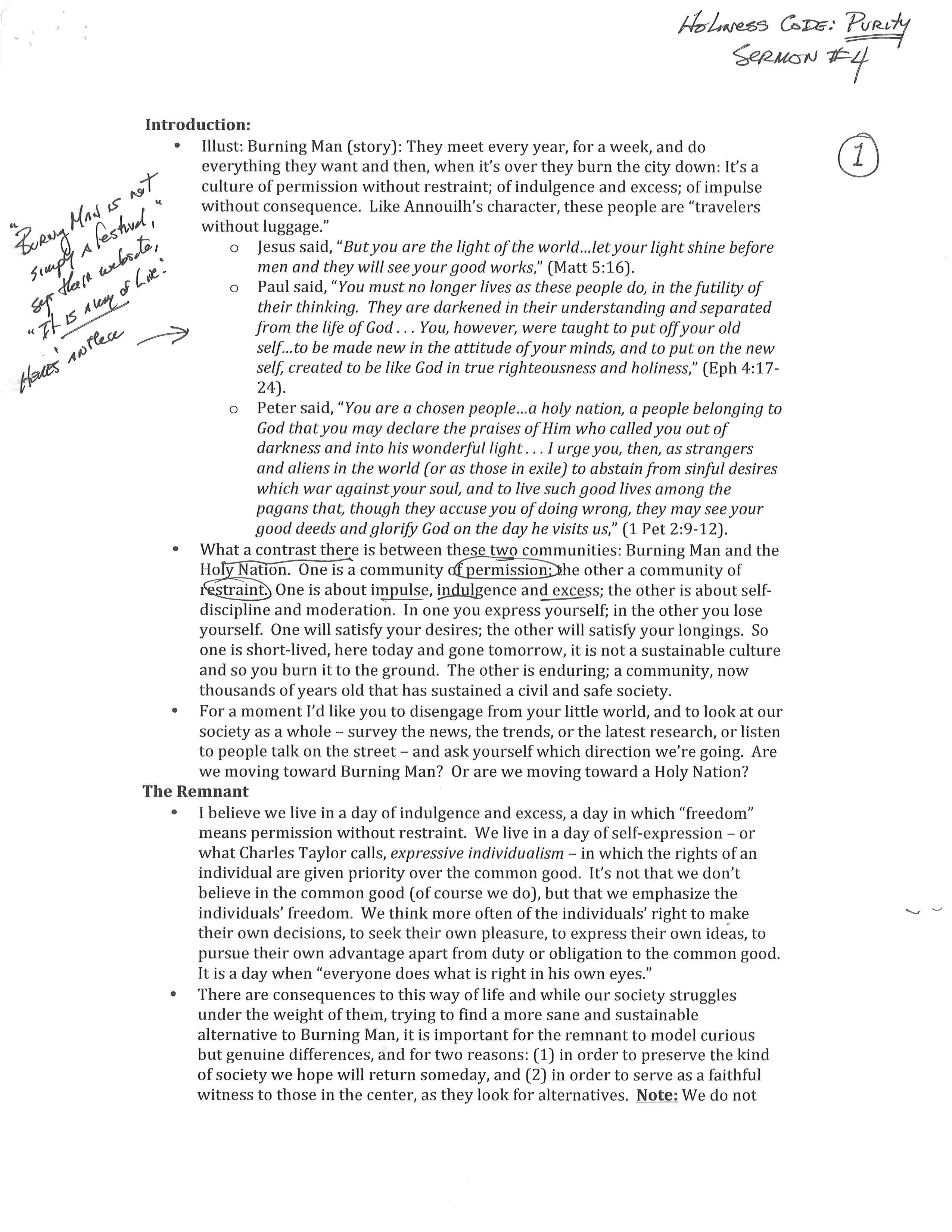 To frame this portion of the series, we’ll argue that the dominant culture has invented gods and that these gods have led us into trouble. The response of the remnant is not to condemn those caught in society’s evil but to offer a quiet, simple and consistent alternative so that those in the dominant culture will have, at least, a choice. This is the purpose of both the Holiness Code (Leviticus 18-20) and the Sermon on the Mount (Matthew 5-7) and so we’ll compare these Scriptures as the foundation for a moral alternative. This alternative is expressed in four commitments that distinguish the remnant.