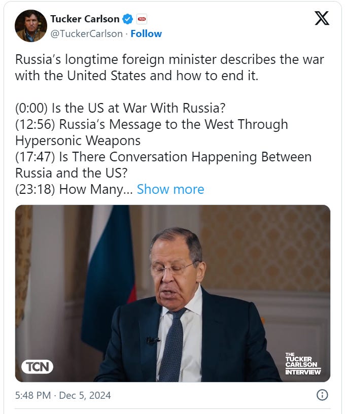 Mirror: https://x.com/TuckerCarlson/status/1864804141735842253