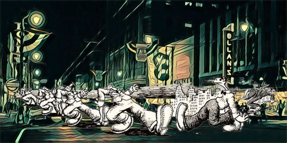 “The mess-around,” said Wingy, “was a kind of dance where you just messed around with your feet in one place, letting your body do most of the work, while keeping time by snapping fingers with one hand and holding a slab of fish in the other!” Now, that’s an image.