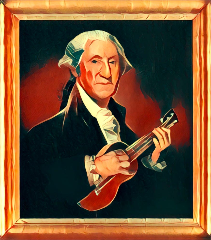 And this one is, of course, is how we get all that big grant money, because it’s about history. Well, sort of. There is some question of whether George Washington ever played ukulele, but we’re pretty sure he knew a red-hot mama or two ….