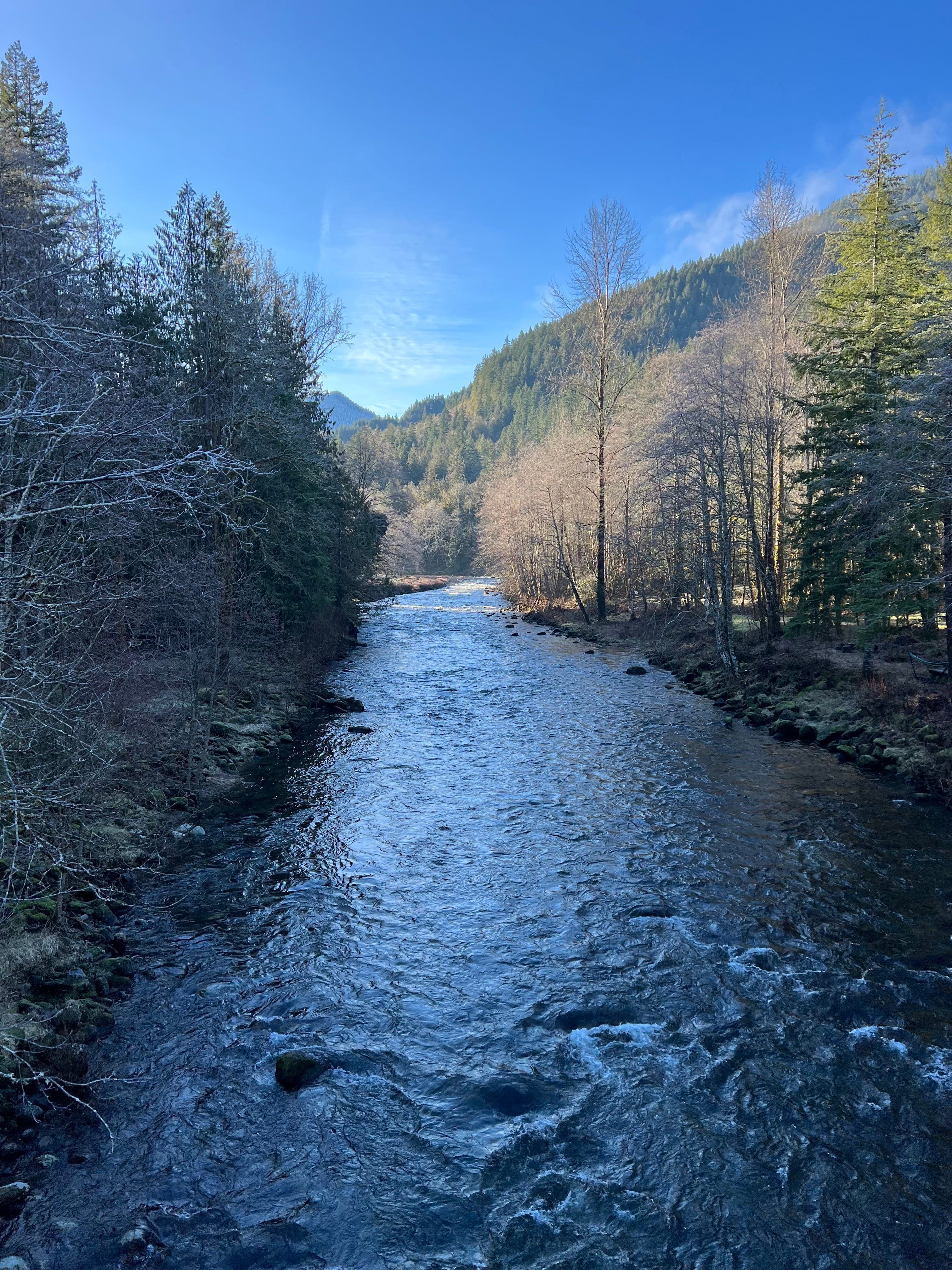 The mountain was immense and the river was tremendous. I started thinking about the water in the river being the same water rushing in my blood. I looked out from my perch on the bridge, witnessing this entity I’ve been taught to label “nature” or the “earth” as if I am not nature, not the earth.