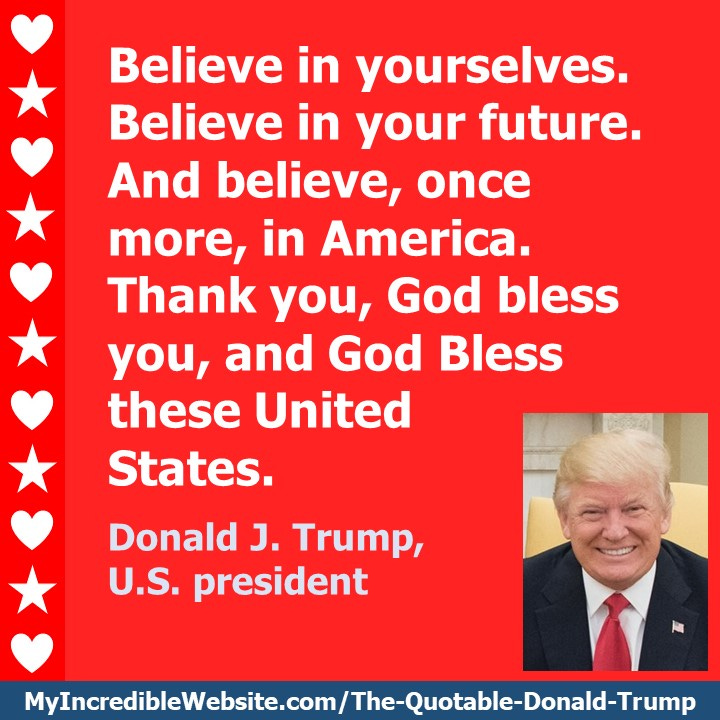 Believe in yourselves. Believe in your future. And believe, once more, in America. Thank you, God bless you, and God Bless these United States. — Donald J. Trump, U.S. president