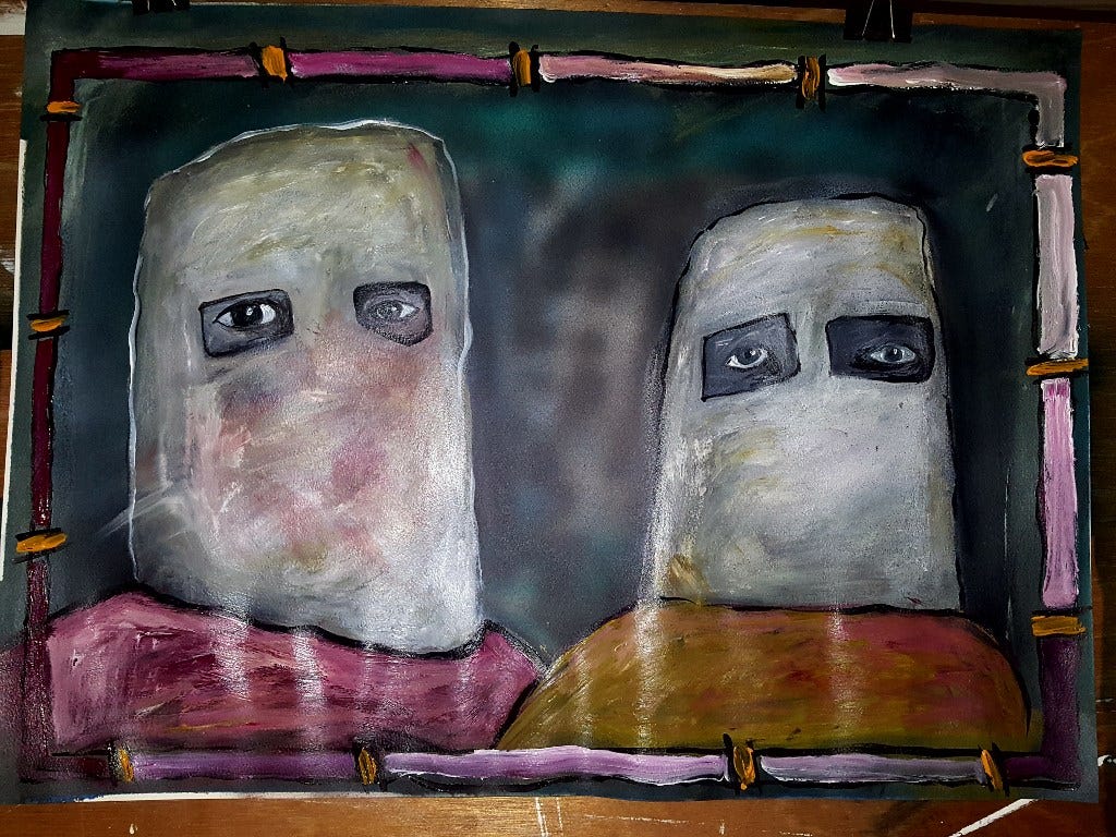 It was a parody of the people around me. Shameful people are obedient. I did not hold back on confronting images when I exhibited on Phillip Island for 3 years . I really have never held back ever. I had one or two curators who were willing to put my paintings forward which helped. I knew in my heart they would come out of the woodwork because we are all not of the same ilk and art touches so deeply. I guess I haven't lost faith in humanity just yet. "