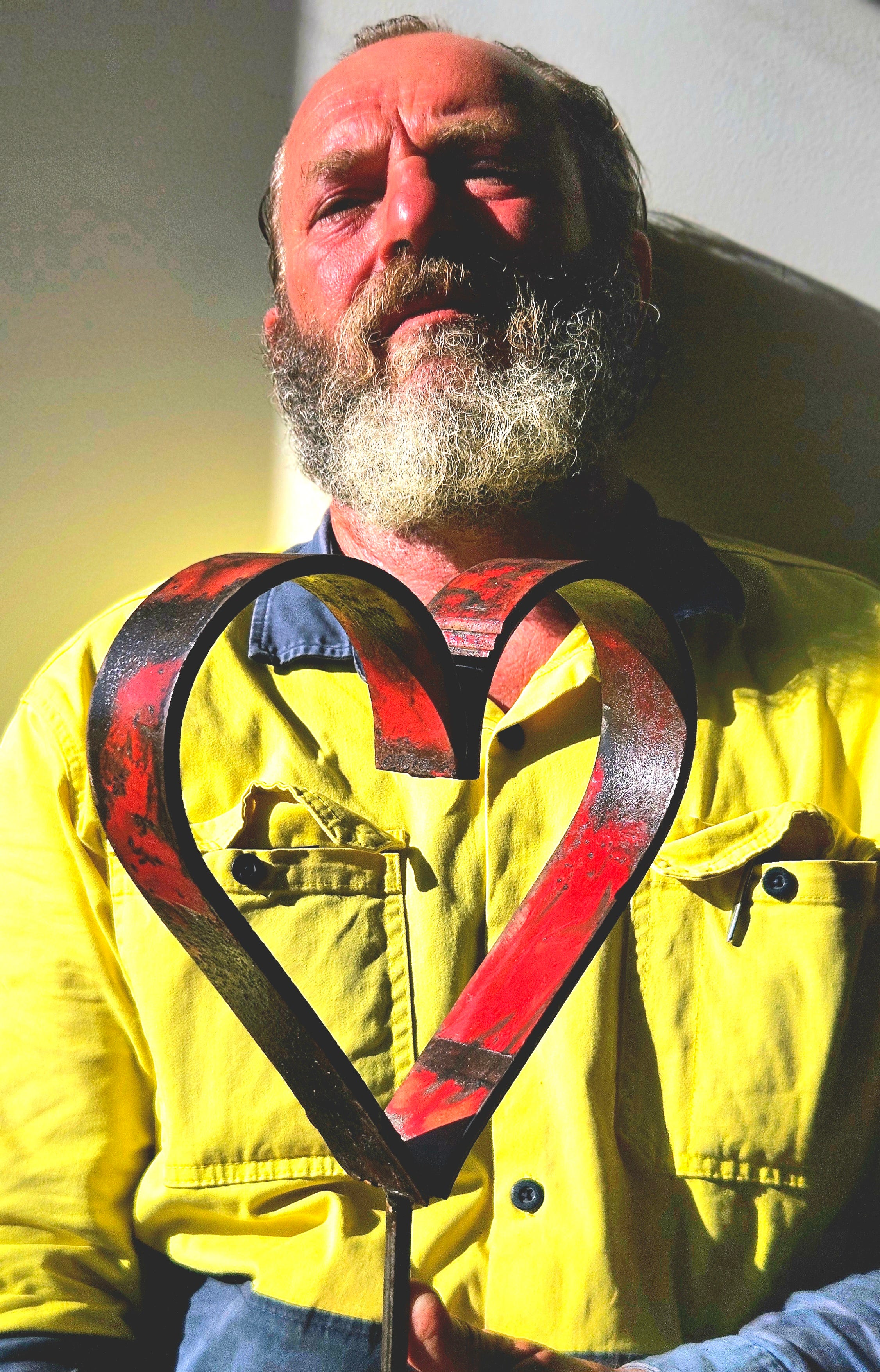 In the back streets of Deniliquin, Richard who has been coping with personal issues, had a light flicker on in his soul. A welder and and builder, he had been creating sculptures from scrap iron.Now he had a idea for a piece that could bring joy to people's lives.Here, he shows us how he creates his weathered, but unbreakable hearts, from discarded farm machinery.