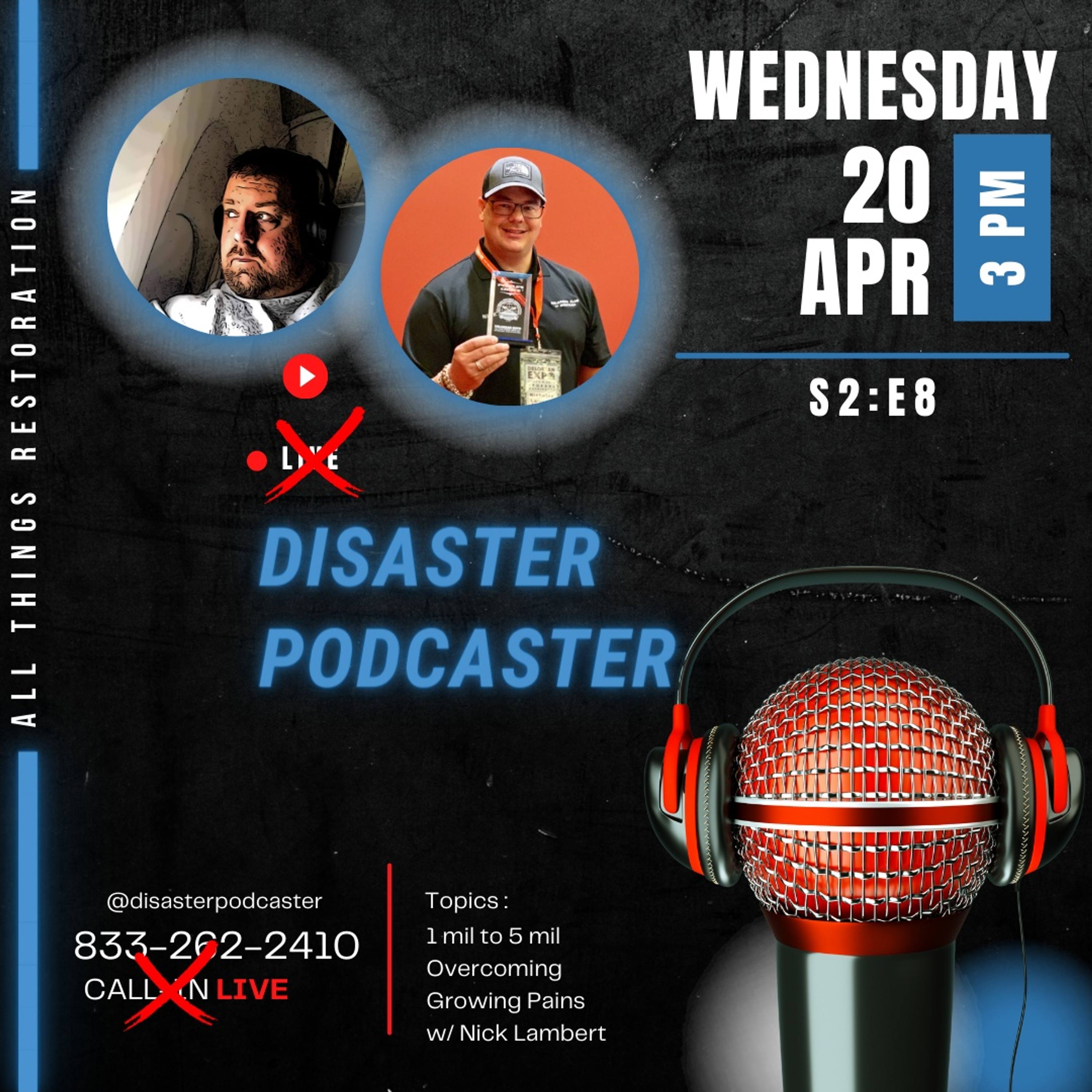 🎬 Thank you for tuning in to the Disaster Podcaster. We know your passion will match ours as we talk about and discuss anything and everything for Restoration/ Remediation/ Cleaning/ Construction. Our podcast is different. We are audio/ video/ live and take callers in REAL-TIME.... except this week. This is a pre-recorded episode. We welcome comments! We will be sure to respond to every one! Season 2 Episode 8 : We sit down with Nick Lambert at Faithful Restoration to discuss what has happened since Season 1 Episode 4 back in Jan 2020. We did a rerun of S1E4 3 weeks ago in S2E5. Be sure to listen and hear the first part of the story! Growth can be painful... we talk about restarting with a clean slate, and scaling rapidly with good systems. Real life. Real talk. Real stories. 📞 We invite you to call in anytime during the live show at 833-262-2410 📆 Every Wednesday at ⏰ 3:00PM EST Streaming live from: https://www.youtube.com/c/RestorationAdvisers + https://www.facebook.com/disasterpodcaster ❤️🎉 Thanks to our sponsor= KAHI Automated Asset Intelligence