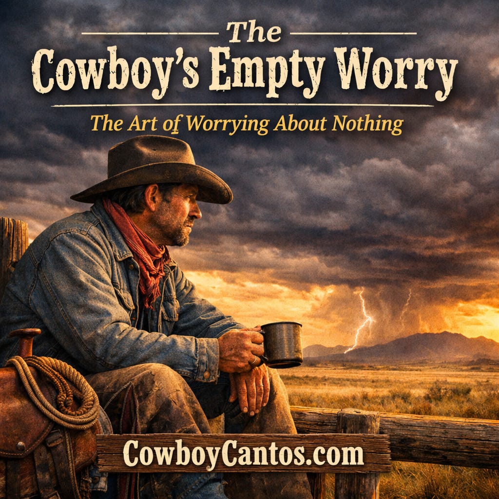 When the saddle’s tight, the coffee’s hot, and nothing seems to be going wrong… that’s about the time a man starts wondering what he’s missed. With a touch of humor and a bit of prairie philosophy, “The Cowboy’s Empty Worry” explores that familiar cowboy instinct to expect trouble even on the calmest day.