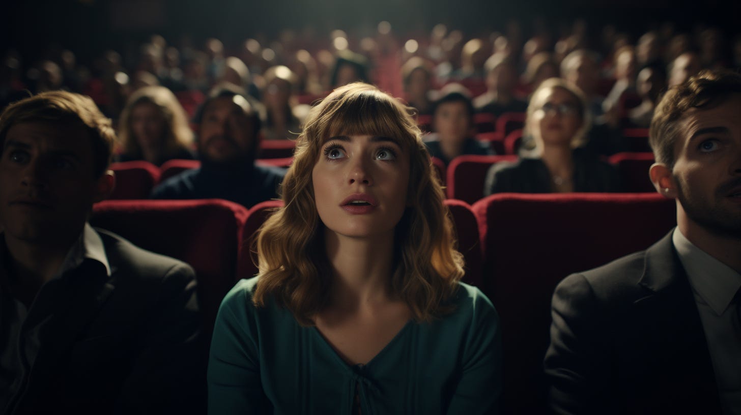A murmur fluttered through the room like an inebriated butterfly. Millie unfurled her pièce de résistance—a poster with an enigmatic chameleon, its skin a patchwork of movie genres. “Imagine, if you will, a film that changes based on real-time reactions from the viewers! An AI, yes an AI, my little sheep, will dynamically adjust plot, characters, even genre as the audience emotes. Romance turning stale? Bam! Alien invasion! Tired of the hero’s moral dilemma? Poof! He becomes a charismatic anti-hero. The age of static storytelling is dead!”