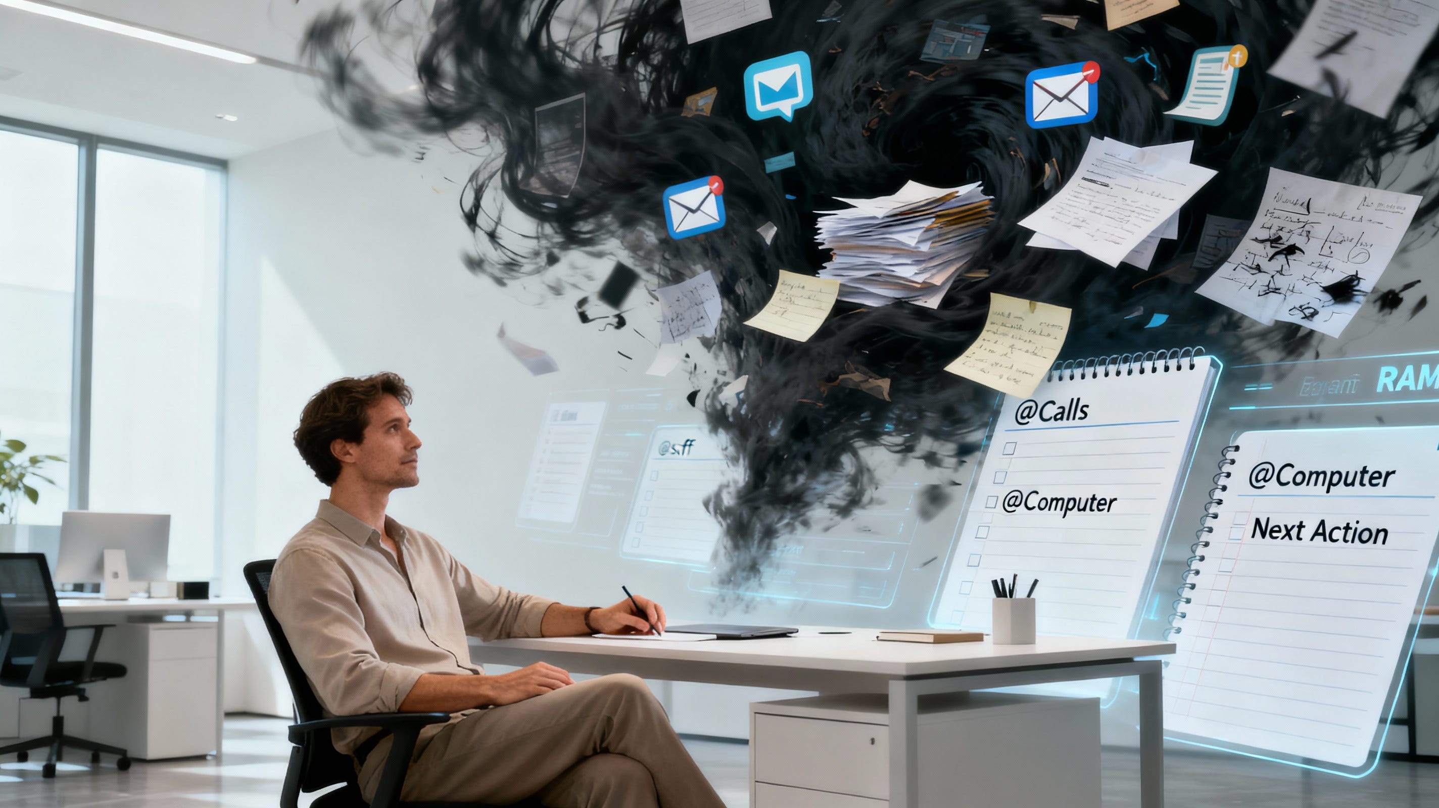 * Entlastung des Geistes durch externe Erfassung: Der größte Teil des Stresses entsteht durch unvollständig verwaltete Verpflichtungen („Open Loops“), die im Kopf gespeichert sind,. Um diesen Zustand zu beenden, muss alles – egal ob groß oder klein, persönlich oder beruflich – in einem logischen, vertrauenswürdigen System außerhalb des eigenen Kopfes erfasst werden,. Nur wenn das Gehirn weiß, dass die Aufgaben sicher gespeichert sind, kann es aufhören, ständig daran zu erinnern.