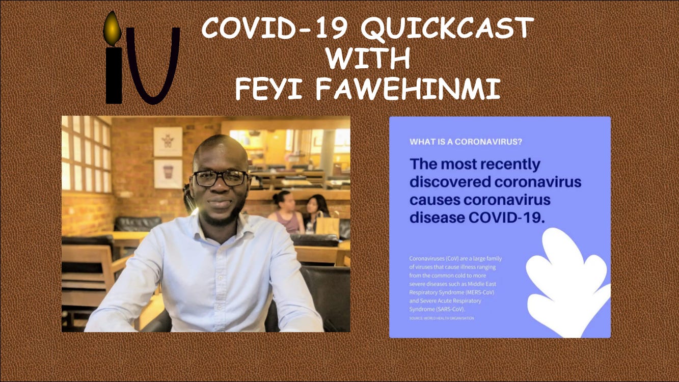 This is the first of a series of conversations that will explore issues surrounding COVID-19. Some societies and systems will be permanently altered after the pandemic - and it is important for us to assess the current state of the world in other to design a better one. I spoke to Feyi Fawehinmi on the divergent institutional responses to the crisis, particularly on the nuances of authoritarian approaches compared to more democratic ones. Feyi is one of the most spontaneous thinkers I know, as the entire conversation was “off-the-cuff”. He is also one of the biggest supporters of this project from the start. Many thanks to him for doing this.
