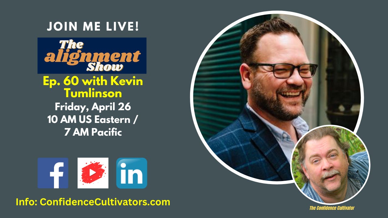 I warned you earlier this week. Indeed, I fanboyed over today’s guest. J. Kevin Tumlinson is an award-winning and bestselling novelist, and a prolific podcaster and public speaker. He calls himself a writer of fast-paced, hopeful fiction, and he certainly is that. I find him fascinating for a number of reasons, including that but also because a) he's done a lot of fascinating things, and b) he represents the essence of defining your values and changing things to align with them. We talked about a lot of those things, like the three years he and his wife spent traveling the country living fulltime in a van, his burnout, and his taking a big chance to refocus his life on the essence of who he is. He says, "I’m a writer, first and foremost, and most of all." We probed that process, and we also talked about the mindset that lets you view change not as a threatening thing, but a hopeful thing, especially when you feel like life is not worth living. If you missed the live show, we invite you to come along for the conversation in our video replay or audio podcast.