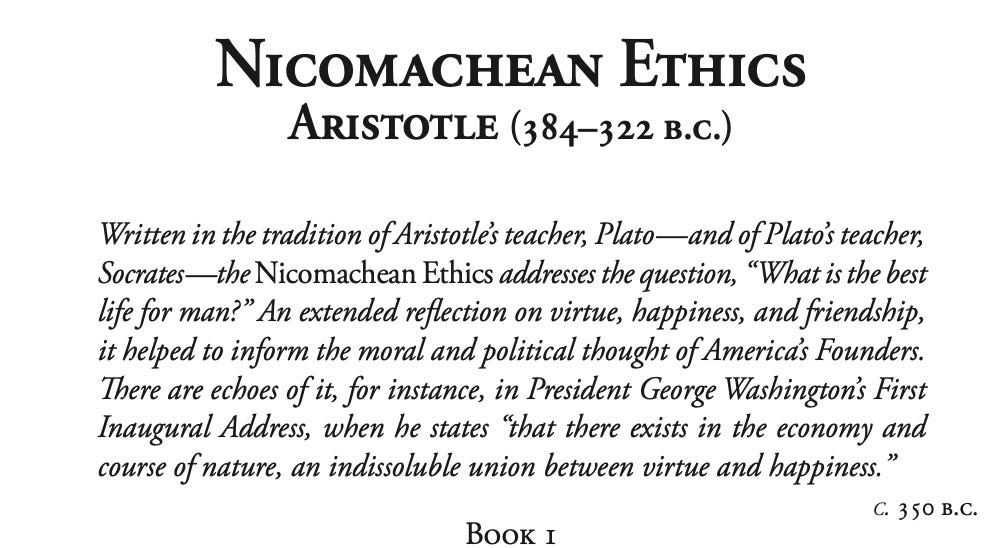 But in order for me to explain this, let’s go to the beginning. Every art, every inquiry, every action and choice ends at some good. This is where Aristotle’s opening to the Nicomachean Ethics, sets up his entire philosophy of human purpose. Some ends are activities, others are products beyond the activity itself.One person of many who was very influenced by this was Ludwig von Mises, and he created Human Action by reducing the Aristotelian structure into Praxeology, the science of purposeful behavior. His axiom, “man acts,” mirrors Aristotle’s “every action and choice ends at some good.” Mises was one of the founders of Austrian economics for those who don’t know it yet.Aristotle speaks of εὐδαιμονία eudaimonia, the flourishing of citizens in the polis, life lived in accordance with virtue and purpose. Mises begins with the axiom that man acts, that every individual decision is purposeful. Where Aristotle sees the good life emerging through civic collaboration, Mises shows how social order arises through the aggregation of individual actions. Both point to the same truth: purpose is never abstract, it becomes visible in the choices we make and in the structures we inhabit.Even in the etymology, the Greek terms reveal the depth of Aristotle’s system. τέλος Telos is the end, the aim, the purpose. πρᾶξις Praxis is the action in which humans make decisions. And προαίρεσις prohairesis is literally choosing beforehand, from pro- “forward, in advance,” and hairein “to take, to choose.” It marks the inner act of deliberate choice that makes action truly human.And the pursuit of happiness. So to see politics as the result of collaboration is to recover that synthesis. Individual purpose and intention converge, and their collective enactment shapes political life. This is why the Founders read Aristotle alongside Cicero and Locke. Politics was not opposed to happiness, but was the framework that secured the conditions for its pursuit.Politics is the master art that synthesizes all other arts and pursuits. Medicine, shipbuilding, and strategy are subordinated to politics because politics asks, what is the good life for human beings living together? In Aristotle’s sense, happiness, eudaimonia, is not private but civic: the flourishing of citizens through virtue within a shared order.Modern life, however, has often severed politics from happiness. Politics is treated as power or bureaucracy these days, which makes no sense to me, while happiness is privatized into consumption or psychology. This has broken the Aristotelian synthesis where politics was originally the shape and the space where individual intentions and purposes became enacted in common.So let’s go back to Aristotle. From the foundation emerges the insight that every act has both an inner and outer dimension: purpose, telos, the end towards which an act tends; and intention, prohairesis, the inner orientation, the deliberate choice of means towards the end. Aristotle makes it clear that purpose and intention are inseparable. The act is human when guided by rational intention, not just by its external result. Intention, therefore, forms the foundation, yet the purpose is what completes the act.