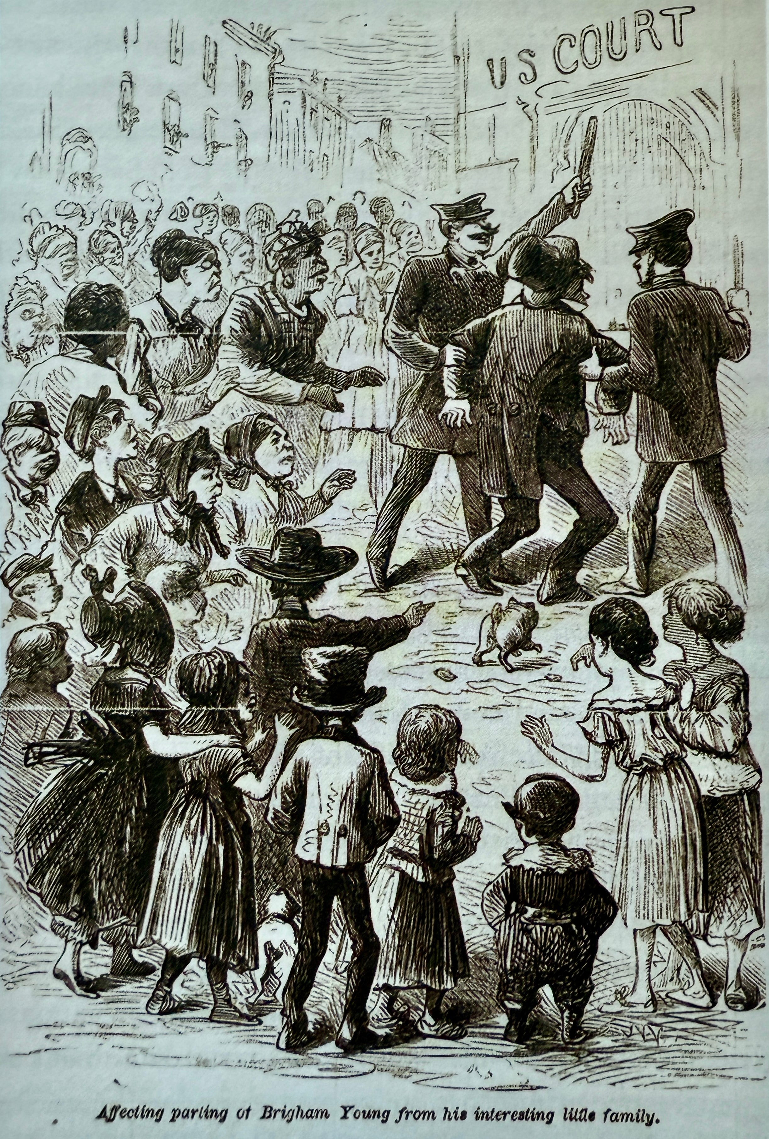 And that's, in fact what this scene depicts is Brigham Young presiding over, a mixed racial family. His wives and imagined his imagined wives and children, right, are mixed race, but also even the angle of the face of the supposed Un-American wives, signal degeneration. They're more ape-like than, you know, human. And Brigham Young himself is depicted in an ape-like physical characterization. So that's one example of how outsiders are imagining Latter-day Saints.