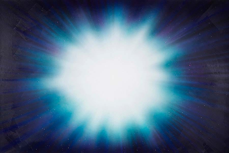 They don't, um, they don't obviously touch on every single sort of. Moment within that transition, but they sort of step out for the key moments from, from almost sort of pitch black on the one end to basically like a fully brightly lit kind of like white painting on the other end. And, um, what, you know, there are many ways in which you could interpret it, but, but the, the sort of title tees it up for one kind of interpretation, which is a visual and experiential standing for the sort of spatial journey that is referenced in Hie to Kolob.