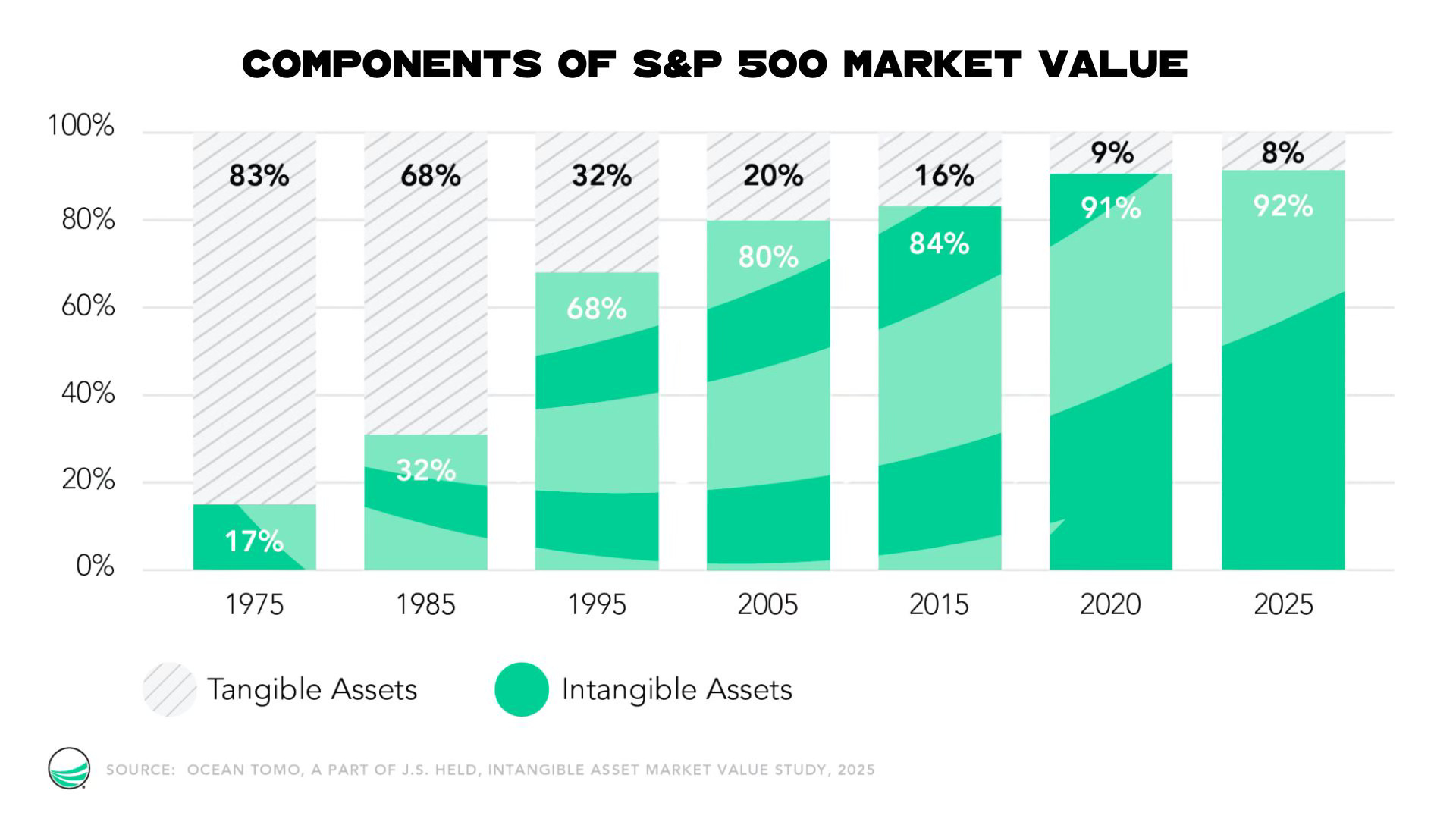 The deeper reason this matters today is that companies themselves have changed. Fifty years ago, most corporate value came from physical assets: factories, equipment, inventory.