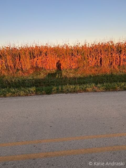 I walked outside and looked toward humps of trees, reminding me of islands off the coast of Maine. We’d found safe harbor at our second parents’ home on a cove protected from the wild Atlantic. Orion was cocking his leg toward the western horizon. All day the fields had roared with dust. Corn stalks flew into the air, smeared the roadsides, as the big machines chiseled their fields.