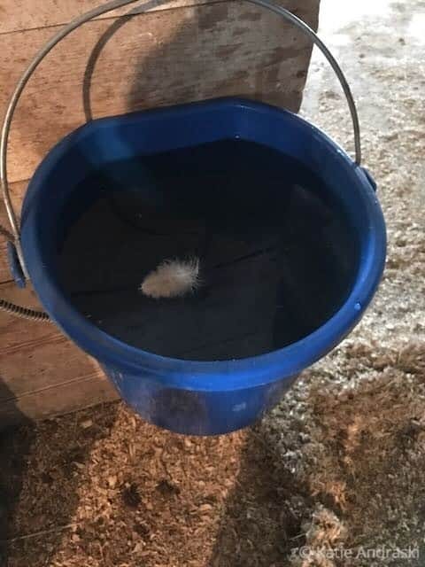 While I was thinking what to say, I walked out of the barn without filling Mrs. Horse's buckets, thinking I was through with chores. But I saw the wagon with the water I’d hauled from the house, the buckets full. Forgetting her water is not trivial. A horse will colic, a potentially deadly malady, if they don’t get water. I’d already locked up the gates, so I had to slip through them to open them up. I carry the weight in my right hand, and lift the bucket to slosh it in.