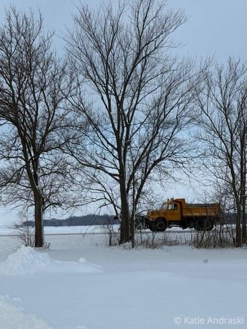 The road where I walk has gone from always straightforward, to it depends on how much snow or ice has fallen as to whether I will walk the dogs there. During the snowstorm, as beautiful as the blur of snow falling across the fields was, I avoid the road. And once the snow is cleared, road salt can burn the dogs’ paws. Aiden is so fascinated by those piles of spilled salt he wants to eat it. Now that we have a fenced in yard, it’s easy to just turn the dogs out and let them run. I miss my walks with the sun breeching the horizon, tugging my thoughts back to a simple thank you. The other day I stumbled into a pile of snow in the ditch, embarrassed when I lurched back onto my feet with snow up to my knees and glad no one was driving by. My number of steps has decreased by several thousand.