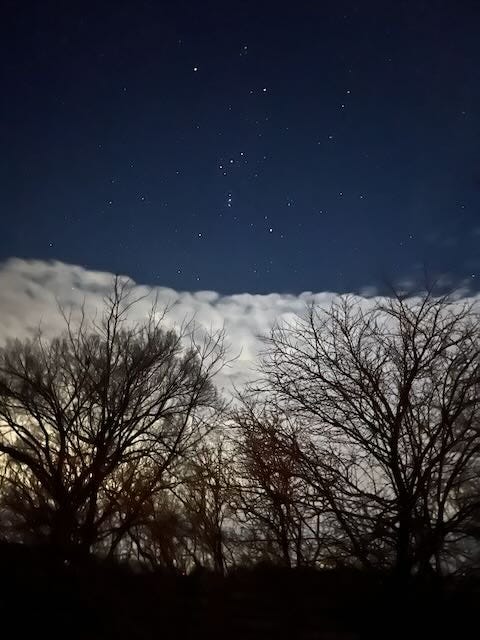 For three days an air mass had shifted down from the North, bringing clarity to the skies like a lens. The stars roared around my ears and I kept thinking about the Sunday sermon, Enter the joy of the kingdom.