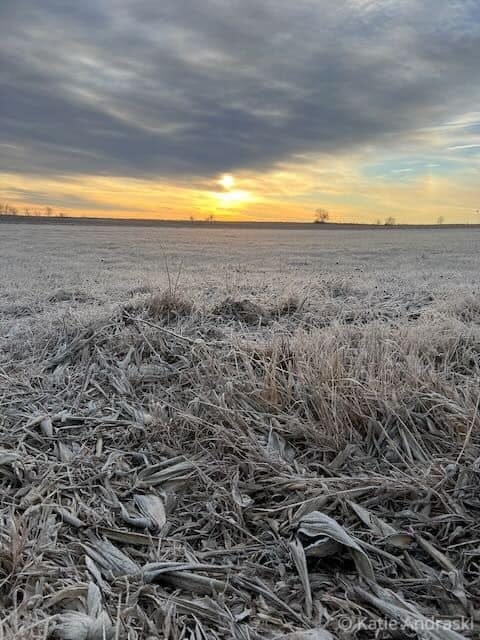 So I look down the valley, a clear sightline to the tin can farm, whose grain bins shine like burnished silver because the corn has been harvested. I see how everything is glazed in pink light. I think of the ring with a pink stone that I lost as a young girl, how I searched and searched under the willow tree but never found it.