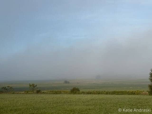 I walk out heartbroken, speaking my prayers today—prayers for Charlie Kirk’s widow and children, prayers of complaint, prayers for friends, prayers for the country. When I turned towards the sun, it blinded my eyes so badly, if it weren’t for the Ford F150’s headlights, I would have walked into his bumper. Overnight the corn has died. Bright patches of yellow are spreading through the beans.