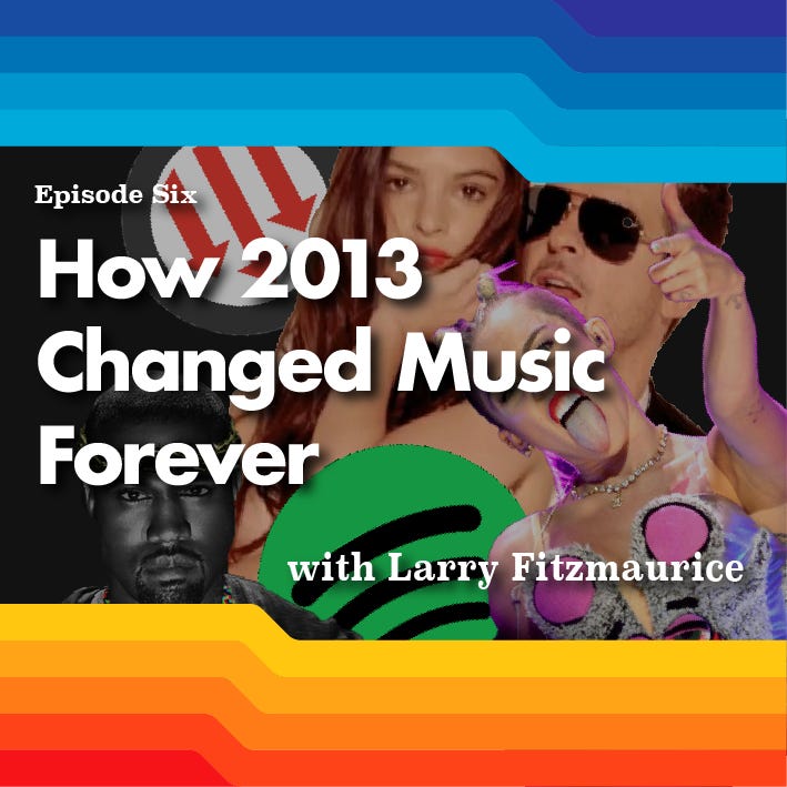2013 feels like another universe today (this was, after all, just the start of Obama's second term), but it also marked a sea change for the industry and music culture as a whole—one that this week's guest, veteran music journalist Larry Fitzmaurice, has been spending the past few months teasing apart in "The Year that Everything Changed," a serialized essay series for his excellent Last Donut of the Night Substack.