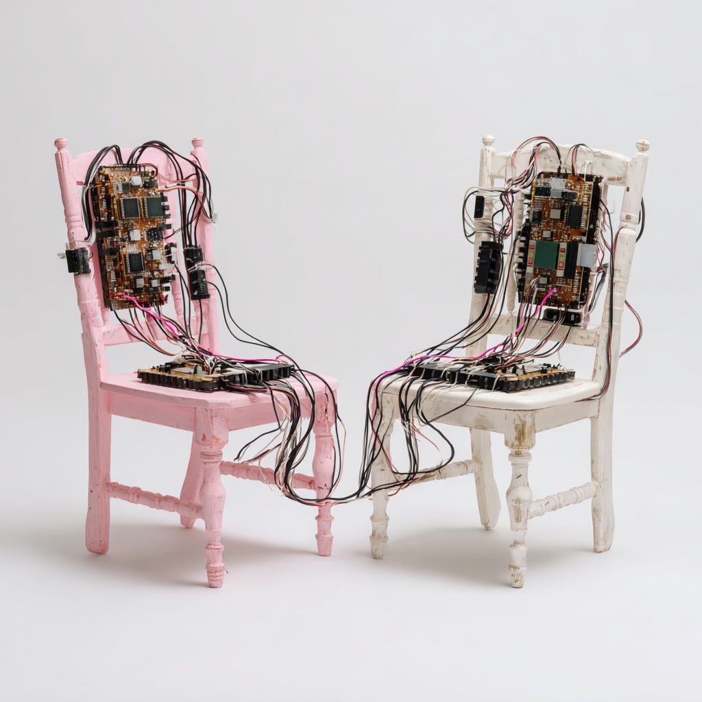 I thought about ELIZA, that ancient 1960s chatbot I ran on my BBS in the ‘90s to chat with users when I wasn’t around. No reasoning, no intelligence. Just reflection. People loved it because it witnessed without trying to fix.