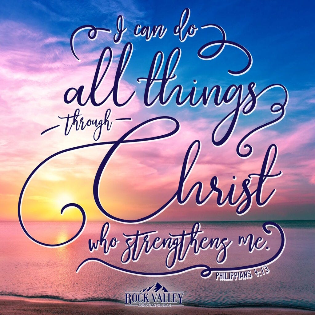 The first one I run across here is from Philippians 4:13, and it says, “I can do all things through Christ who strengthens me.”
