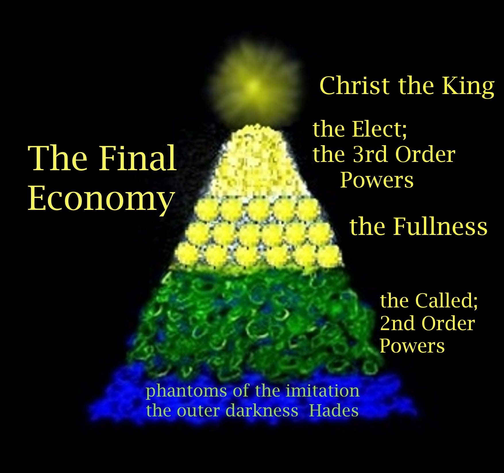 So these shadows didn't exist in the Pleroma; they were shadows, they were imitations of the unity which existed from the first, and that unity is the Fullness of God—the Aeons of the Fullness of God. And it is only these shadows that will be evaporated at the end of time, that will not go to the ethereal plane. All living things will, because we're not shadows of the Fall. We are actually sent down from the unity, from the Fullness of God, with life, consciousness, and love. And so all of that has to return to the Father.