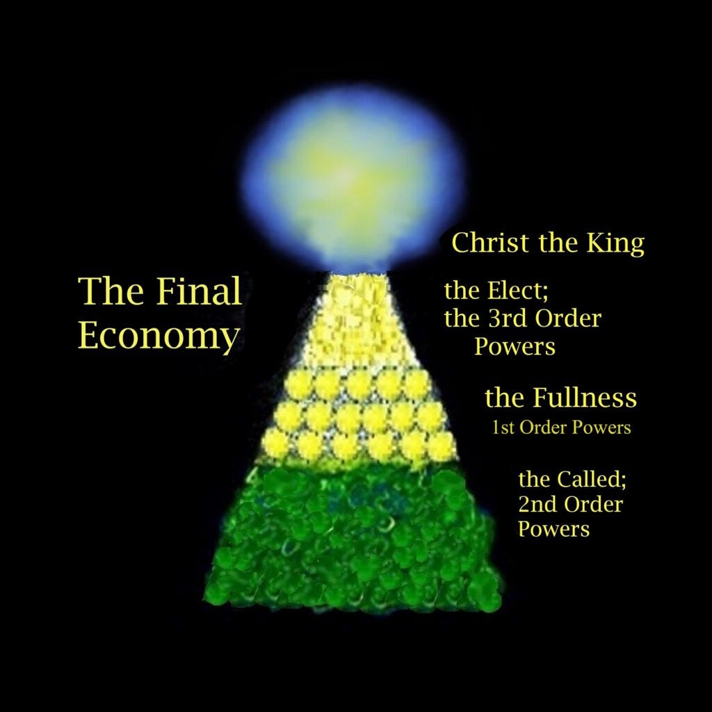 Well, that's pretty neat. See, we are nested fractal hierarchies of the pleroma of the Fullness of God. And if you've been with me a while, you know what that long and complicated sentence means. Picture a pyramidal shape, picture every living part of your body as building up the pyramid, and your conscious self is the capstone of that pleroma that makes up your body. Now, you are then nested along with all other humans into the pleroma of humanity, the body of humanity, also called the body of Adam. Just the way our cells nest up into building us, we nest up into building the great body of humanity.