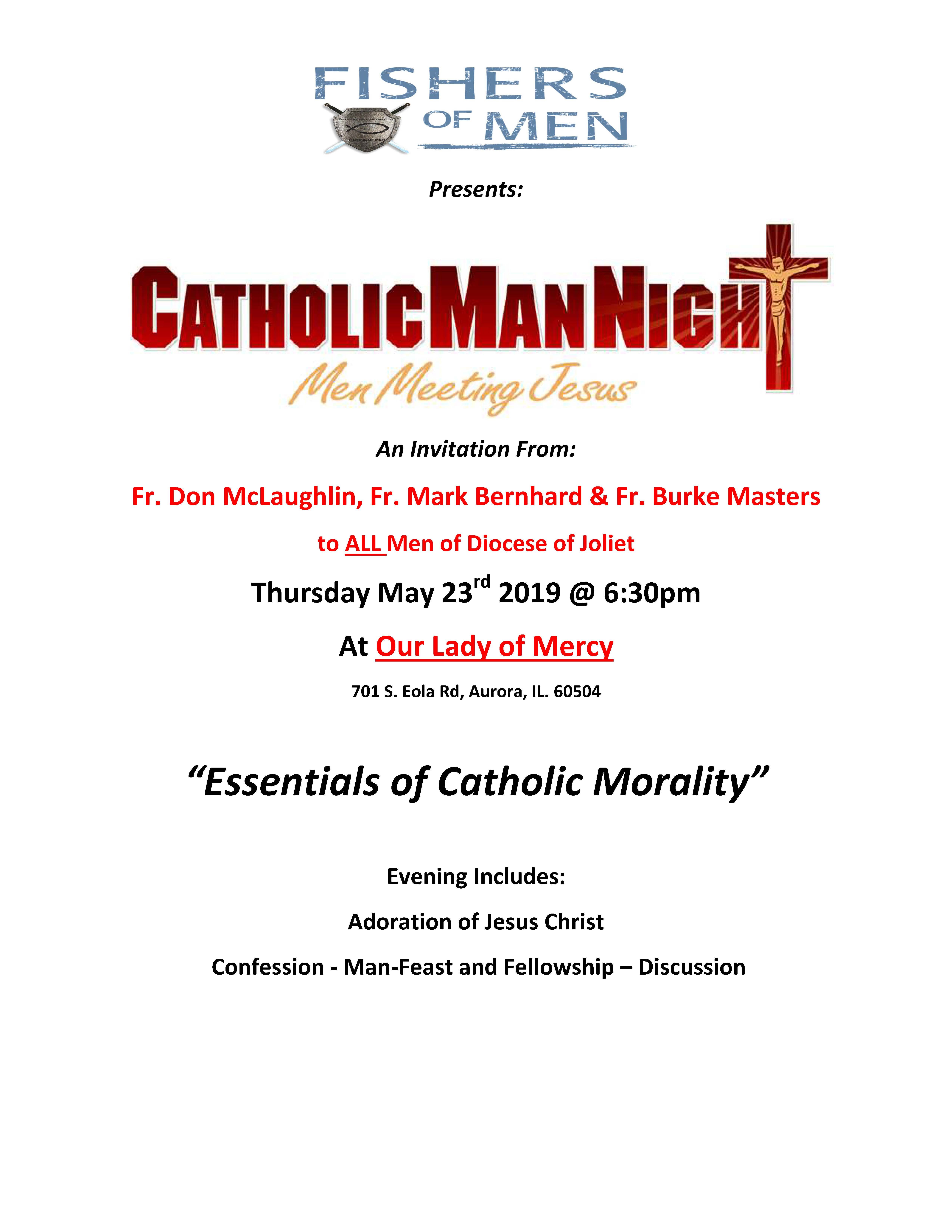 Don’t forget to share this newsletter with other men whom you think will benefit from it. Also, don’t forget to come to the Catholic Man Night at Our Lady of Mercy in Aurora on May 23: