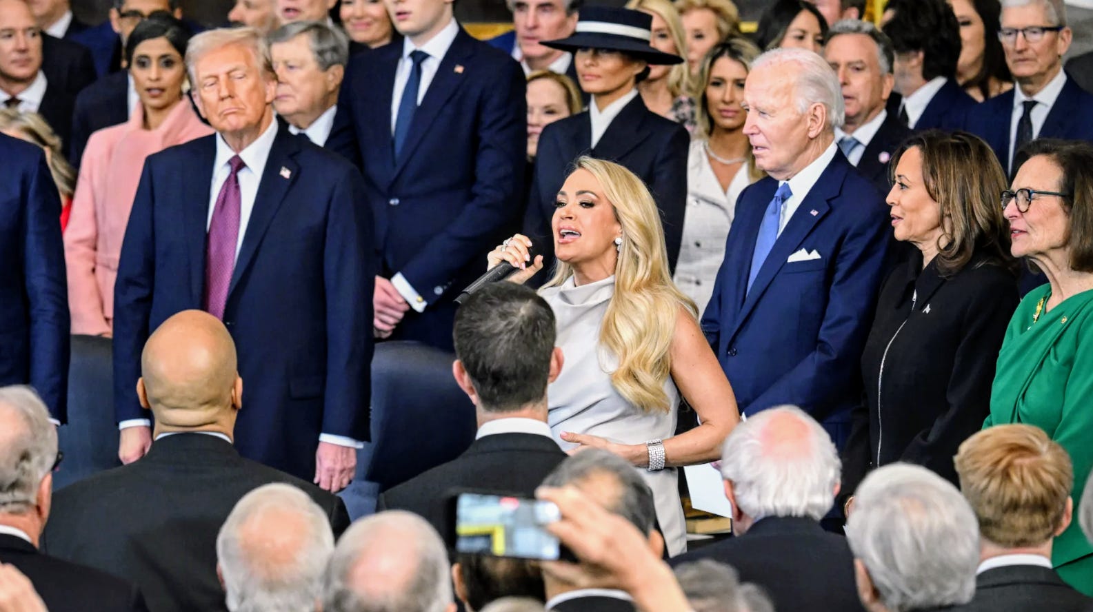 Carrie Underwood performed at Trump’s inauguration today. Though she had to do it acapella due to a sound system failure, she still sang, “America the Beautiful.” Despite God smiting her sound system, Carrie decided to ignore the sign from The Almighty and kissed Mango Mussolini’s ass by performing for a wannabe baby-dicked orange traitor.
