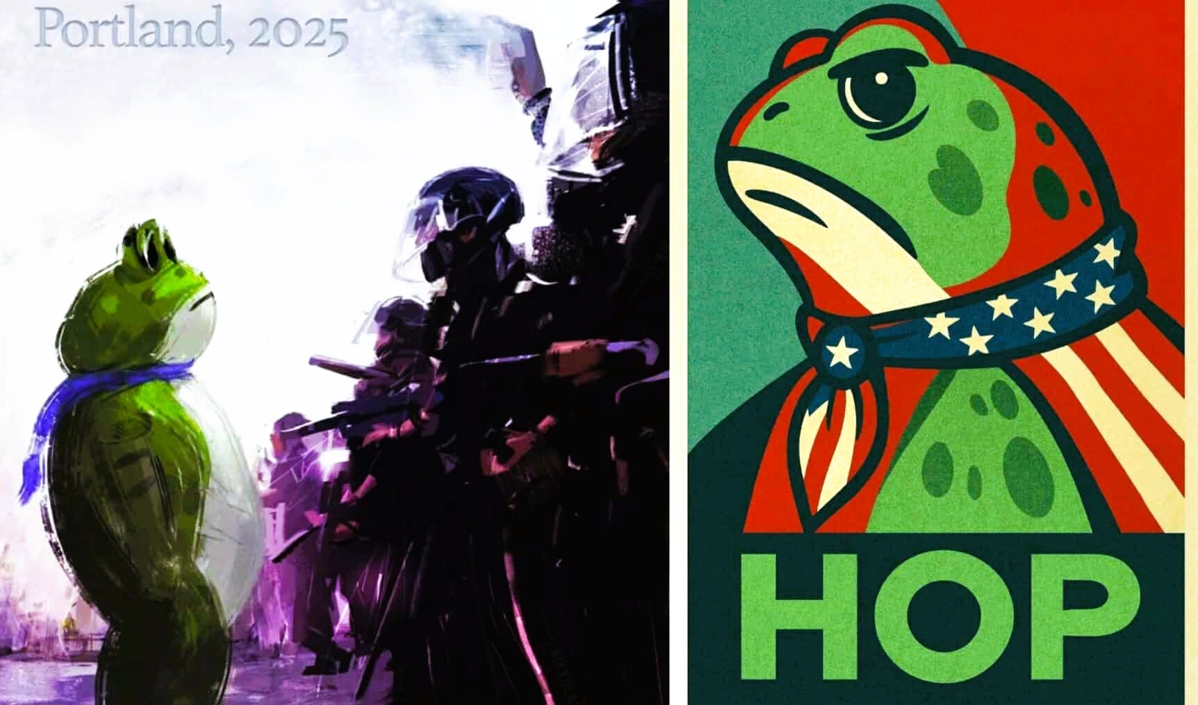 The Portland frogs are showing us all this. People are wearing inflatable costumes and dancing around ICE agents. They can do nothing but stand there and look ridiculous. Though one of these Gestapo pricks shot pepper spray into a frog’s costume.