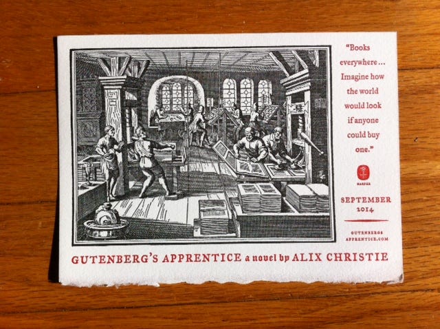 Journalist Alix Christie takes us back to this momentous time, 500+ years ago, in her debut historical novel Gutenberg's Apprentice.
