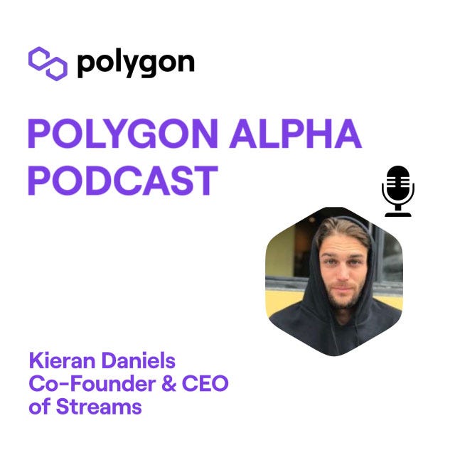 Audio from the June 27th, 2022 installment of “Polygon Alpha” with Kieran Daniels - Co-Founder & CEO of Streams.Polygon Alpha Shorts - https://tinyurl.com/PolygonAlphaShortsYouTube - https://www.youtube.com/c/PolygonTVSpotify - Follow the show on Spotify!RSS feed for Apple Podcast - https://api.substack.com/feed/podcast/863588.rss