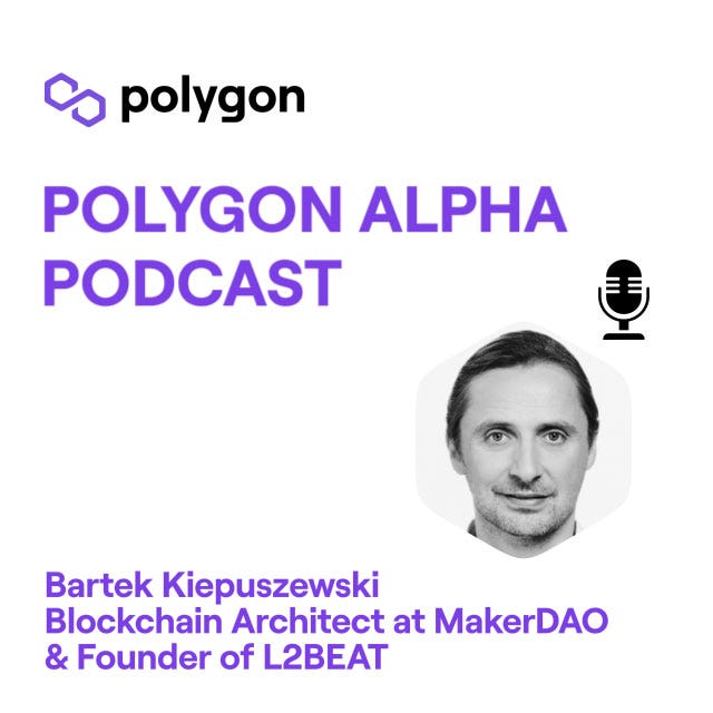 Audio from the June 14, 2022 installment of “Polygon Alpha” with Bartek Kiepuszewski - Blockchain Architect at MakerDAO and Founder of L2BEATPolygon Alpha Podcast - https://polygon.technology/YouTube - https://www.youtube.com/c/PolygonTVSpotify - Follow the show on Spotify!RSS feed for Apple Podcast - https://api.substack.com/feed/podcast/863588.rss