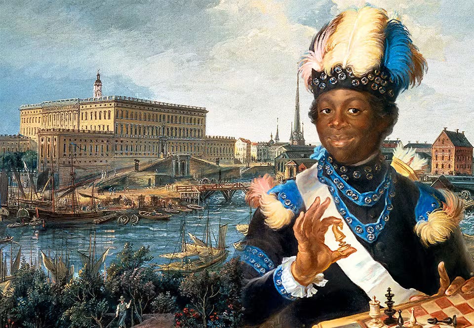 Bilden ovan föreställer Gustav Badin, ca 1747-1822, svensk hovtjänare och senare betjänt och fosterson hos drottning Lovisa Ulrika.