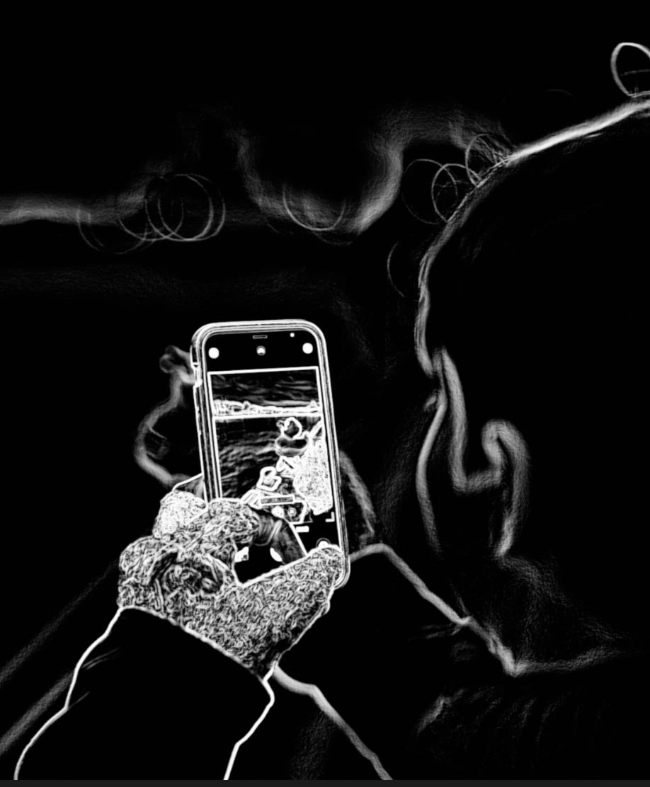 My quiet storytelling is interrupted by a semi-pleading voice, “he’s getting a cup of coffee,” she says. He meets her worry with a patient nod of acceptance, and she feels better. He is being kind, but I can feel his anxiety as his head slowly turns back toward the hotel entrance. Christmas is on the line, and I suppress my desire to tell her we don’t have time. Does her husband know his quest for caffeine is delaying the entire bus?