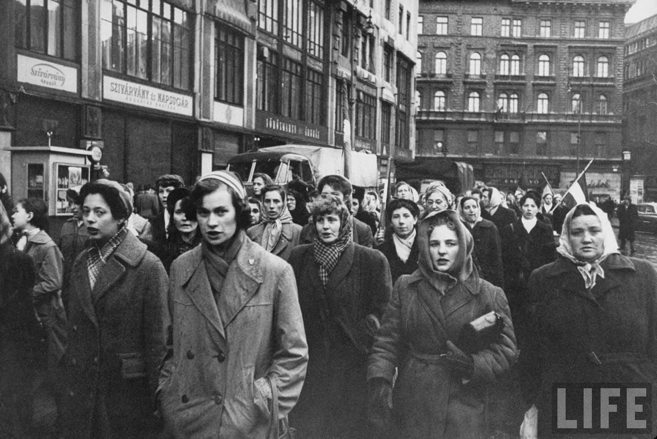 Women in Budapest march in honor of the Hungarian men who died in revolution fighting Soviet-backed communist regime.© Time Inc.Michael Rougier