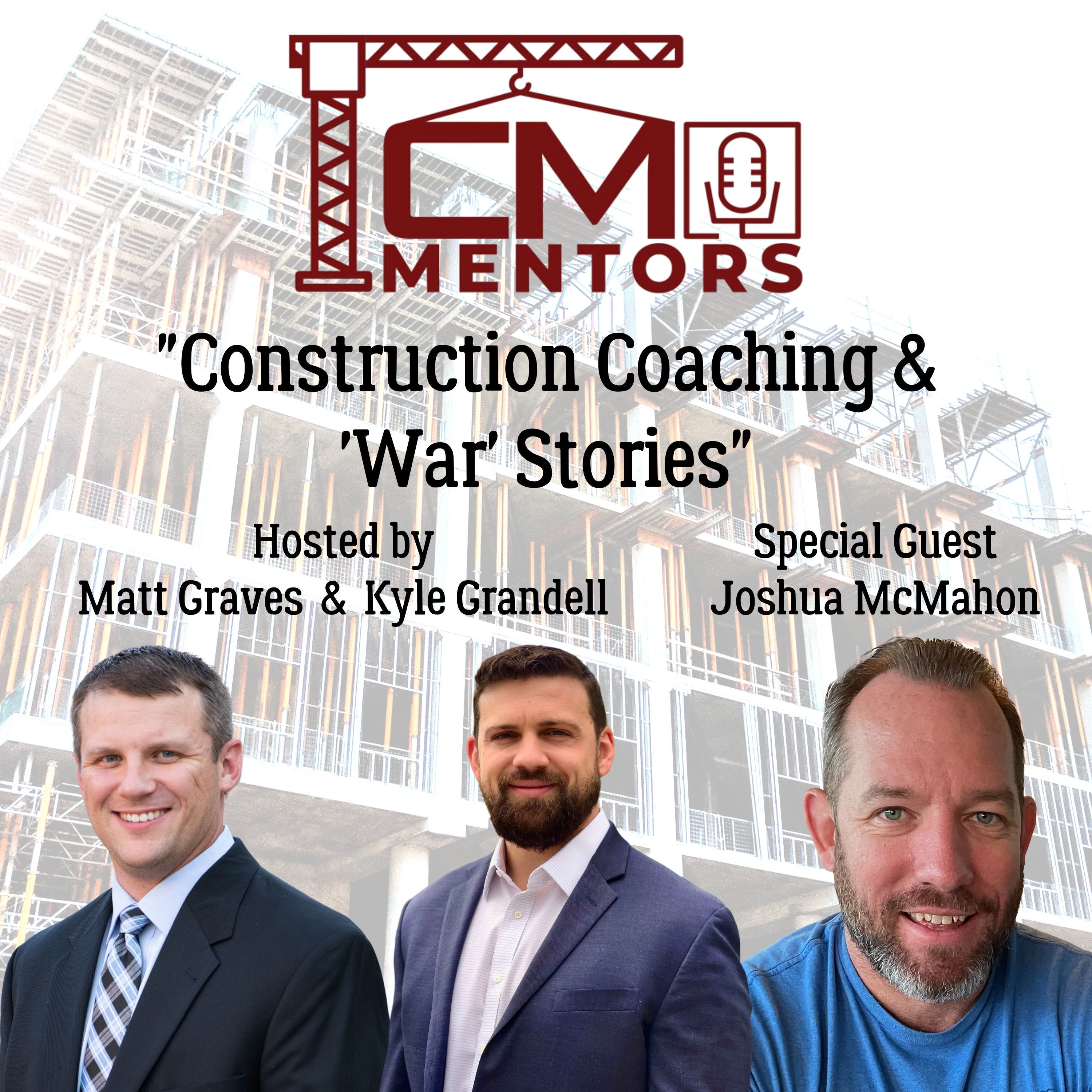 In Episode 11 of The CM Mentors Podcast, Matt Graves and Kyle Grandell chat with Joshua McMahon, President of MCM Consulting LLC. The engaging conversation is primarily about effective coaching in the Construction Industry. Josh shares his experience of the Navy Seabees and the guys share some “war” stories about coming up in the industry and Federal Contracting “fun.”