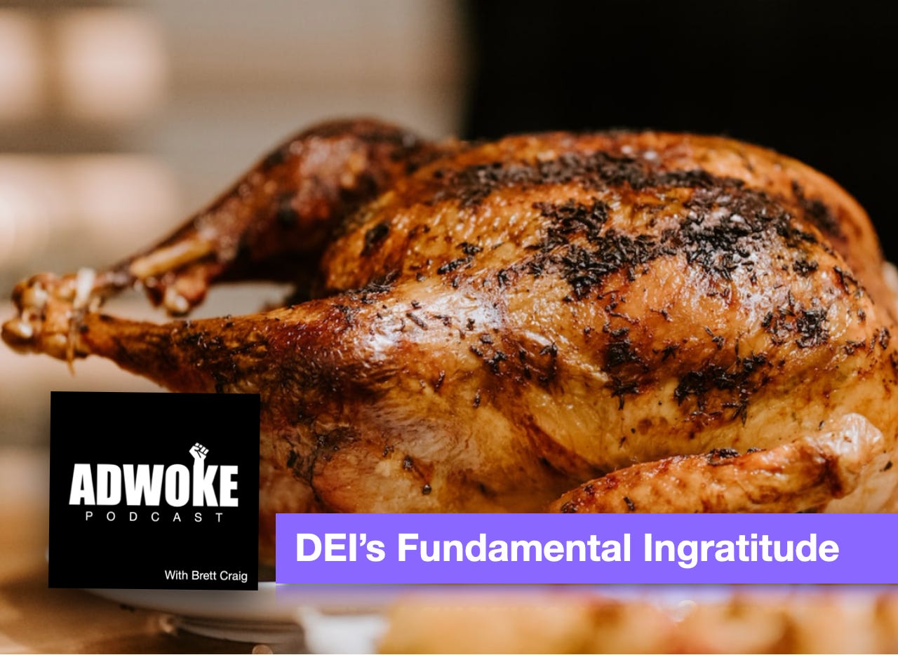In this podcast, I discuss the DEI/Social Justice worldview which makes gratitude impossible and, ultimately, leads to hopelessness. I share an interesting anecdote about “White Fragility” author, Robin DiAngelo. I talk about the importance of giving thanks to God - despite the many problems we have in America, in the world and all the setbacks we each face. And I’ll explain why we can - as James and Jesus instruct us - remain thankful in spite of our many trials.