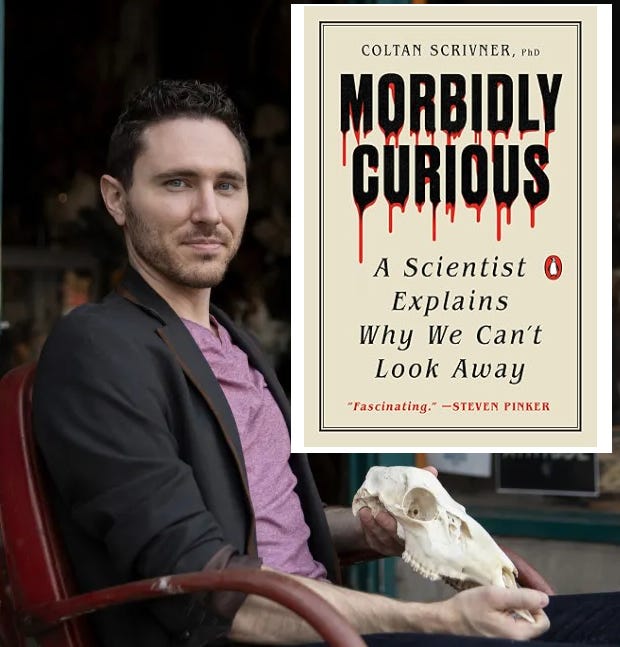 Today, Razib talks to Coltan Scrivner, a behavioral scientist, horror entertainment producer, and author, whose work centers on the psychological and evolutionary roots of our fascination with darkness, horror, and true crime. He is affiliated with the Department of Psychology at Arizona State University. Scrivner also serves as the executive director of the Nightmare in the Ozarks Film Festival and founded the Eureka Springs Zombie Crawl. He has been featured in The New York Times, CNN, The Wall Street Journal, NPR, TIME Magazine, National Geographic, Scientific American and Forbes. He is the author of Morbidly Curious: A Scientist Explains Why We Can’t Look Away, where he explores how our fascination with horror functions as a survival-oriented, yet deeply human, impulse.